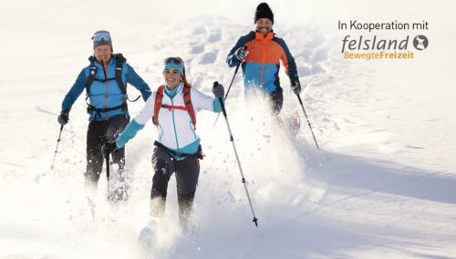 inklusive Guide, Leihmaterial mit Schneeschuhen und Stöcken